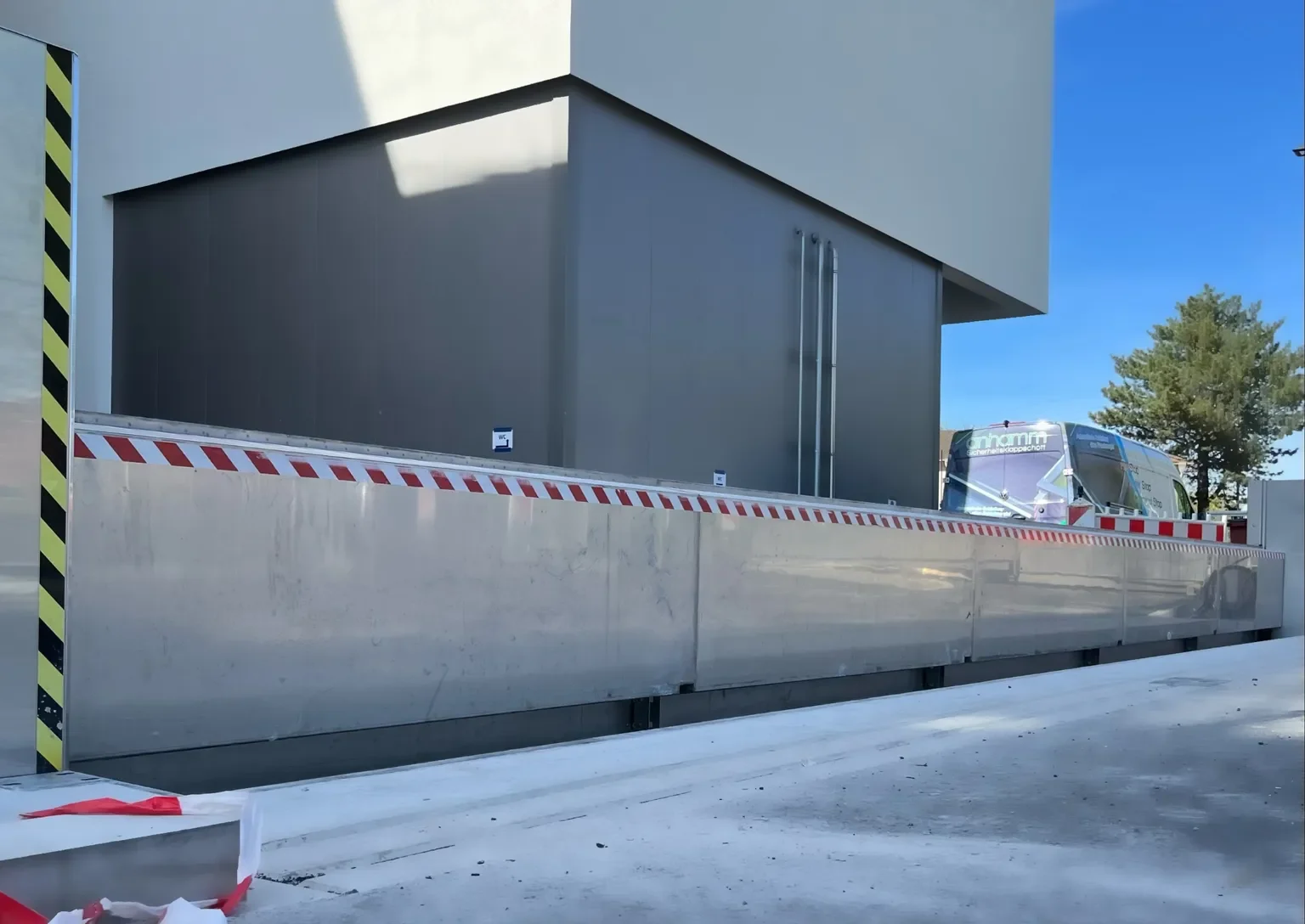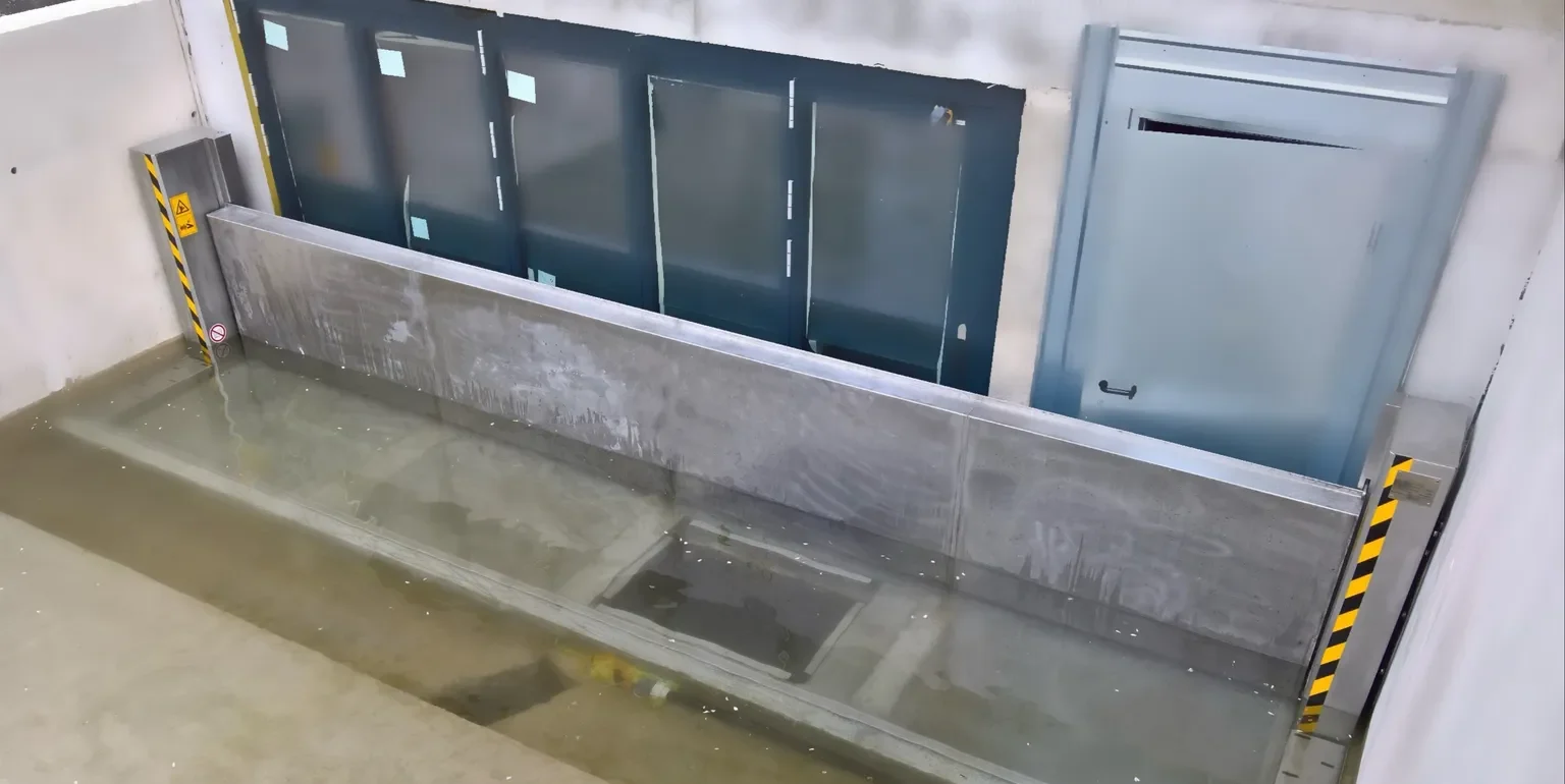 Dieses Kundenvideo demonstriert, wie die Wasser Klappschotts das Eindringen von Fluten vollständig abdichten und somit zuverlässigen Schutz bieten. Die Aktivierungsgeschwindigkeit des Klappschotts passt sich präzise an das Volumen der eindringenden Wassermenge an und gewährleistet stets eine sichere Position über dem Wasserstand. Selbst in zu dem zum Schluss zu sehenden Fall, in dem sich eine Person unbefugt auf die Oberfläche der Klappe gestellt hat, wurde die Funktionsfähigkeit und Zuverlässigkeit nicht beeinträchtigt.